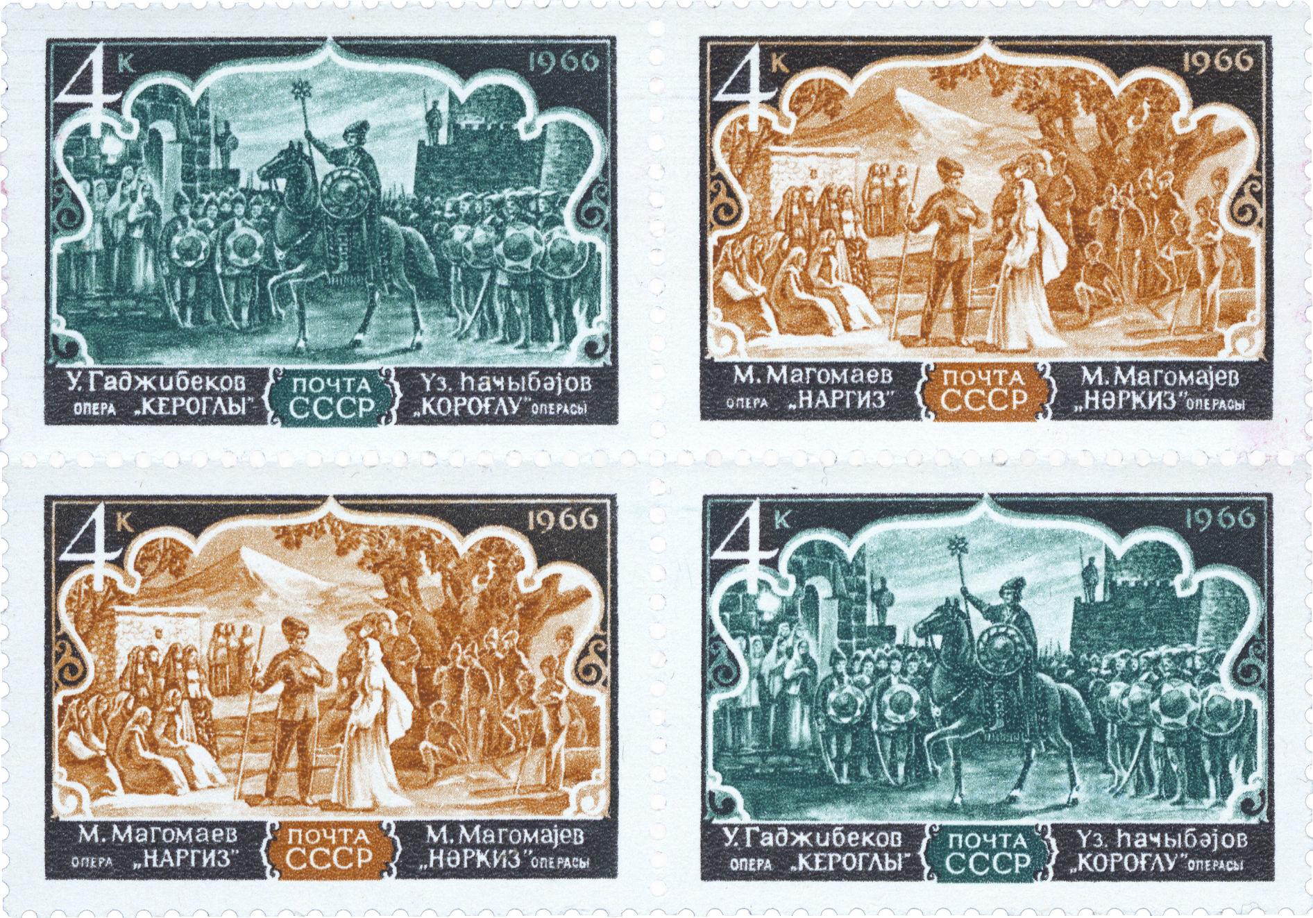 Сцепка: 6 марок, 2 купона.